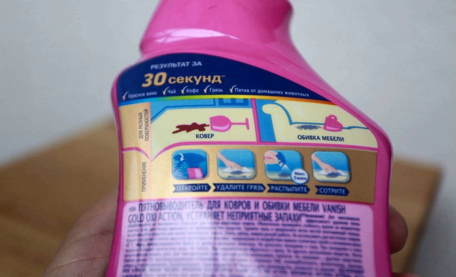 Средство для удаления пятен Vanish OxiAction. Оно доступно в различных формах, и для очистки матраса или дивана удобнее использовать спрей. Обработайте загрязненное место и тщательно потрите его. Если пятно не исчезнет с первого раза, повторите процедуру.