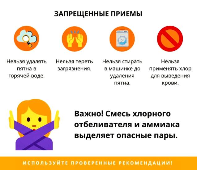 | Матрас/Диван (застарелое пятно) | Специализированные средства для удаления крови | Использовать согласно инструкции на упаковке. |