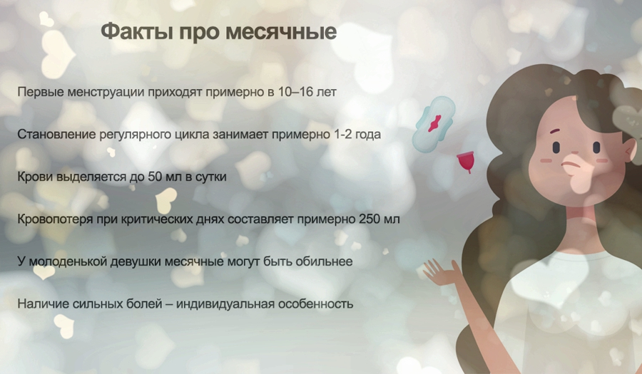 Первые месячные могут начаться совсем скоро – через полгода или даже раньше. Рекомендуется иметь прокладку при себе!