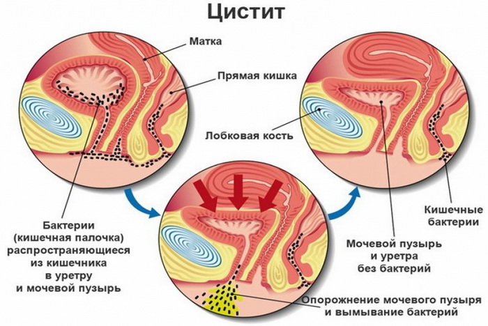 - Цистит. Симптомы этого заболевания могут проявляться как во время менструации, так и после неё. Бактерии могут легко проникать в репродуктивные органы и уретру в этот период, что приводит к рези.