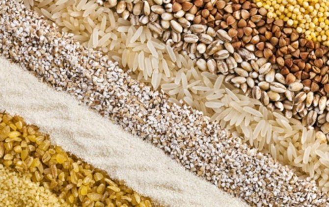 - крупяные изделия. Овсяная, гречневая, ячневая, перловая и рис особенно незаменимы при патологиях ЖКТ. Перед готовкой крупы замачивают на 4 часа, затем хорошенько промывают и варят на воде до готовности. разрешается добавлять немного сливочного масла;